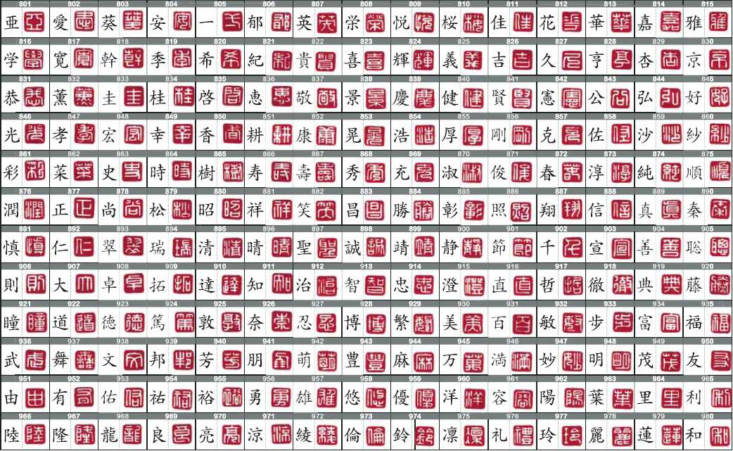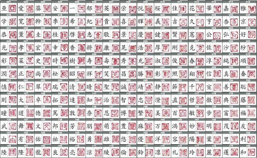 朱文・白文それぞれ180字の中からお選びいただけます。