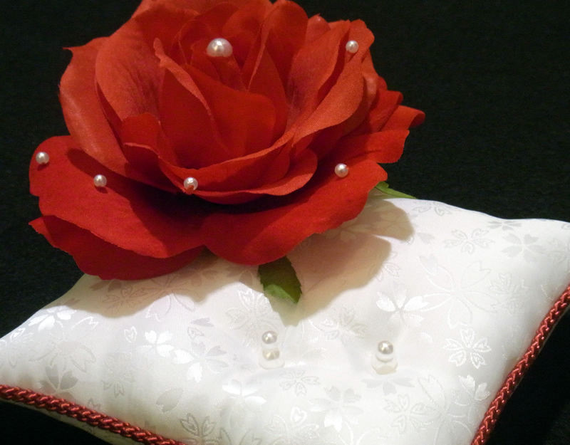 真紅の薔薇が何とも美しい和風リングピローが新登場。