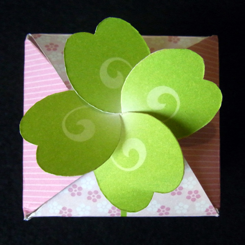 クローバーが印象的でなんとも愛らしいプチギフトです。